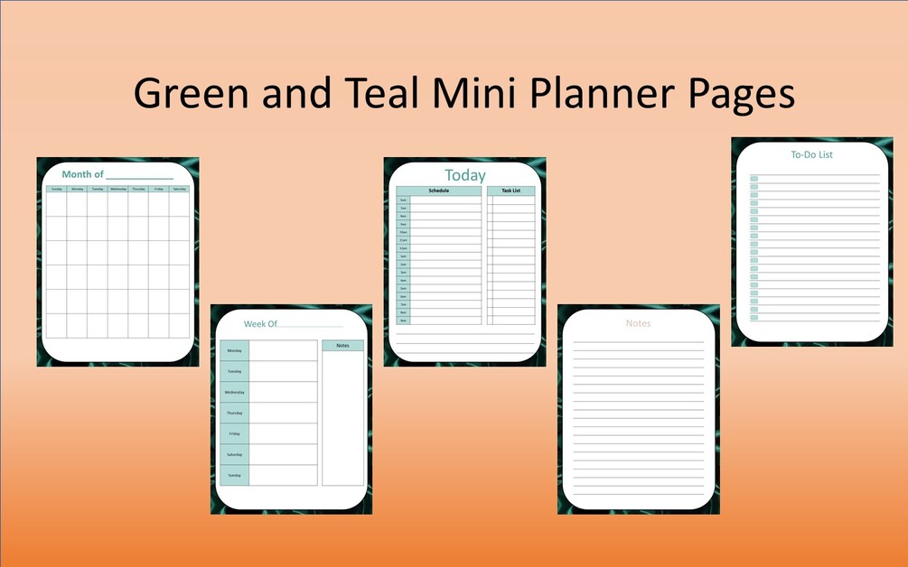 Green and Teal Mini Planner Pages