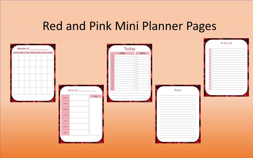 Red and Pink Mini Planner Pages
